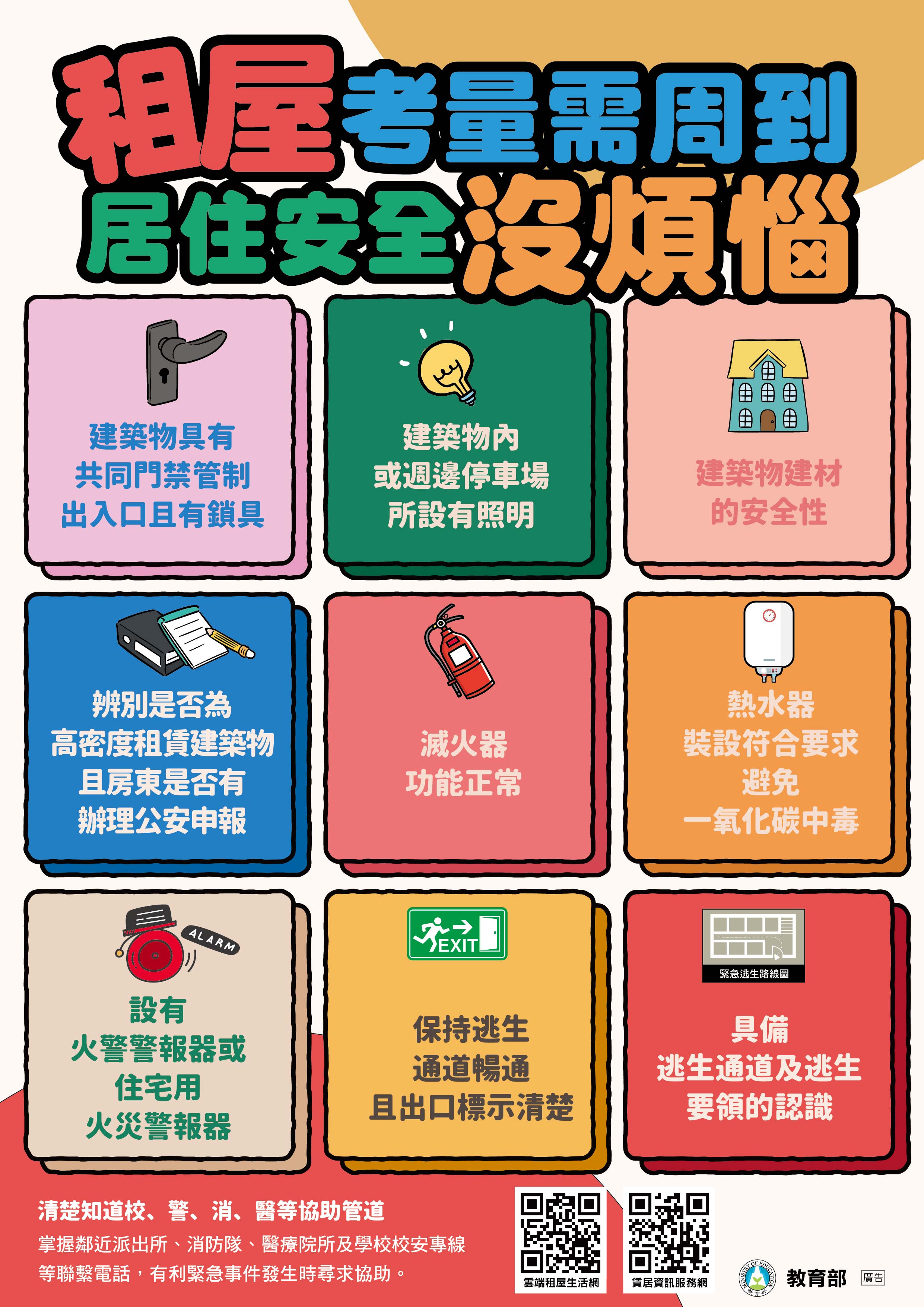 110年教育部賃居安全宣導海報-簡版(110.12更新版),歡迎同學下載運用。