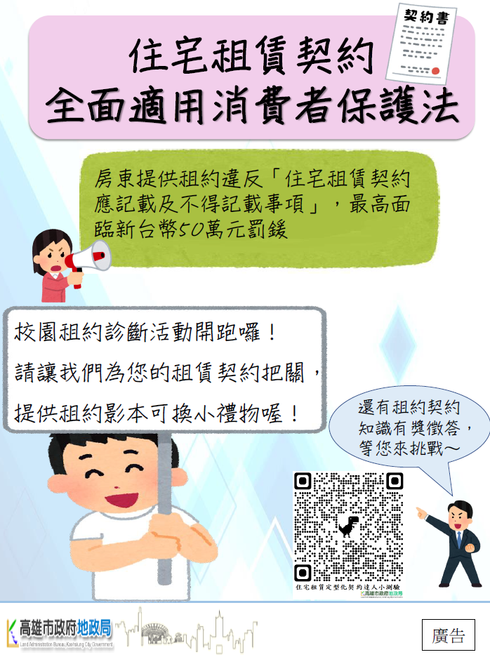 鼓勵賃居同學帶著房屋租約到場健檢,確保同學們的租屋權益唷。