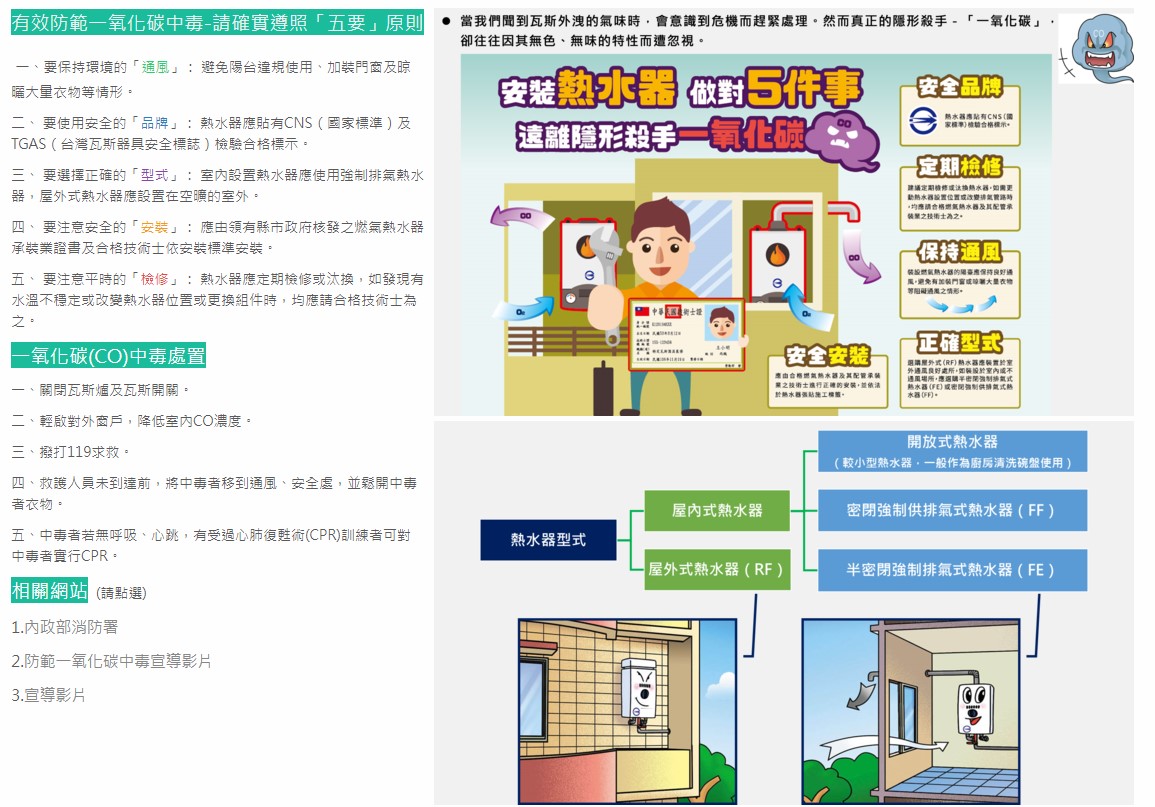 <防災避難>有效防範一氧化碳中毒-請確實遵照「五要」原則
