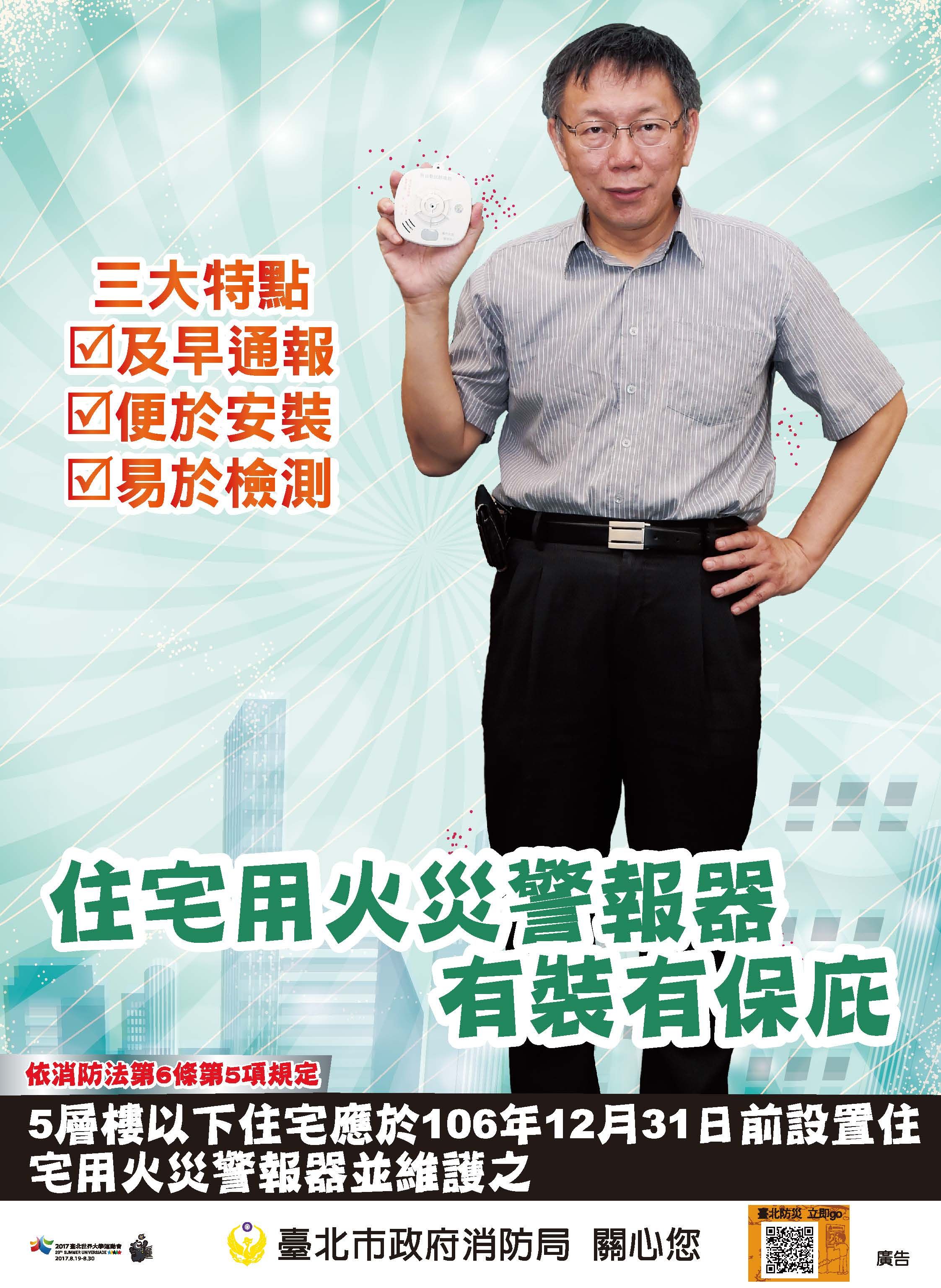 四、檢附住宅用火災警報器海報表1份,相關訊息請至北市消防局網站下載(網址:http://www.119.gov.taipei/list.php?id=438)。